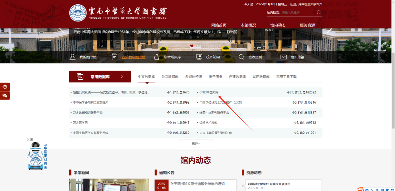 (一)访问图书馆官方网站:http://www.tsg.ynucm.edu.cn/,进入图书馆主页。