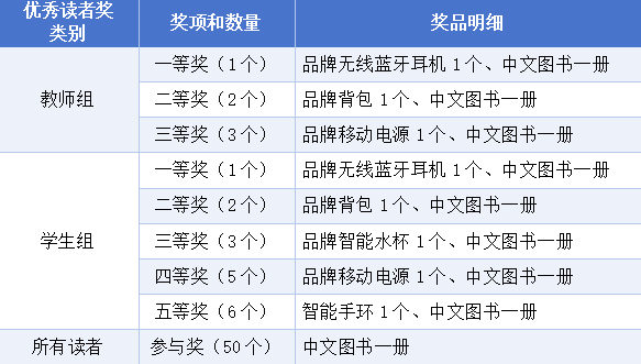 3、读者参与奖: 教师取10名,学生取40名,共50名。