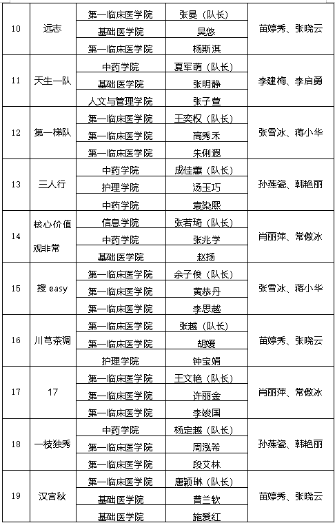 2023年西部大学生信息素养大赛云南中医药大学赛区校级选拔赛于10月14日线上举办,本次比赛全省共有22所高校参与,6262名同学参加比赛,其中我校共728名本科生参加比赛,经过激烈角逐,57名选手成功晋级,图书馆按照初赛成绩强强联合进行组队并根据选手《信息检索与利用》课程的选课情况分配了指导老师,具体名单如下: