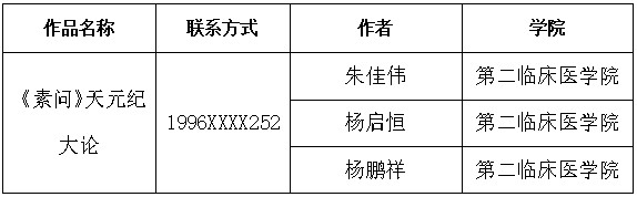由“中华思想文化术语传播工程”秘书处,外语教学与研究出版社,云南省高等学校图书情报工作指导委员会主办,云南省各高校图书馆,北京外研在线数字科技有限公司,新广拓力(北京)教育科技有限公司和云南书润科技有限公司联合承办的2023年云南高校“中华思想文化术语——中华新青年”主题大赛已圆满结束。本次大赛我校共提交8份参赛作品,其中“中华青年墨”提交7份,“中华青年秀”提交1份。经专家评审,我校朱佳伟、杨启恒、杨鹏祥三名同学的作品“《素问》天元纪大论”获“中华青年墨”团队奖项三等奖。获奖名单如下: