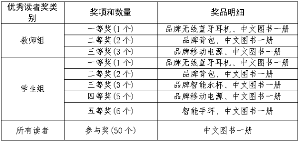 3、读者参与奖: 教师取10名,学生取40名,共50名。