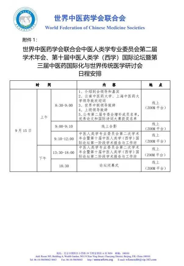 世界中医药学会联合会中医人类学专业委员会第二届学术年会、第十届中医人类学(西学)国际论坛暨第三届中医药国际化与世界传统医学研讨会