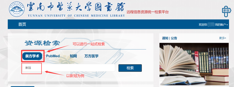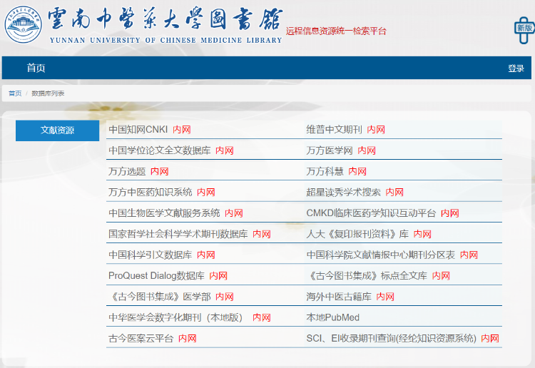 一、云南中医药大学图书馆远程信息资源统一检索平台