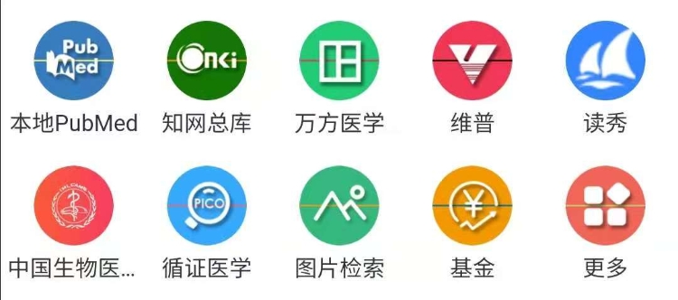 电子资源检索区:本部分为学校可移动端检索使用的电子资源数据库,点击更多,可查看资源列表。数据库资源展示的顺序可进行自定义检索和下载。