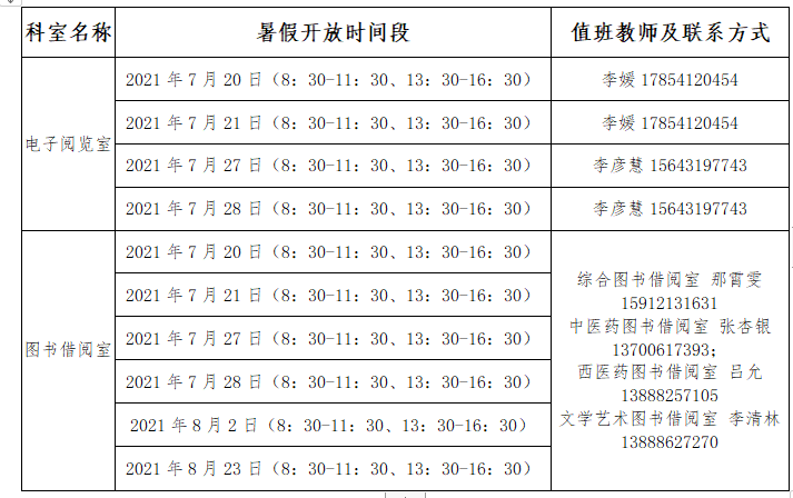 根据学校《关于2021学年暑假放假及有关工作安排的通知 》要求,图书馆暑假期间开放安排如下: