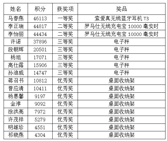 此次活动,图书馆高度重视、精心安排,组织全校师生积极参与答题竞赛。通过七天的答题,共计答题10526次,达到了以赛促学的目的,现将获奖名单公布如下。