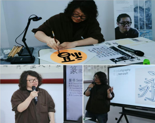活动第一个环节由中国画与书法写作名家张军老师引领同学们参与“以字传情”的汉字书法体验。张老师为留学生们讲解了汉字从甲骨文到楷书的演变历程,并指导他们用兼毫毛笔书写《黄帝内经》中的关键词汇。
