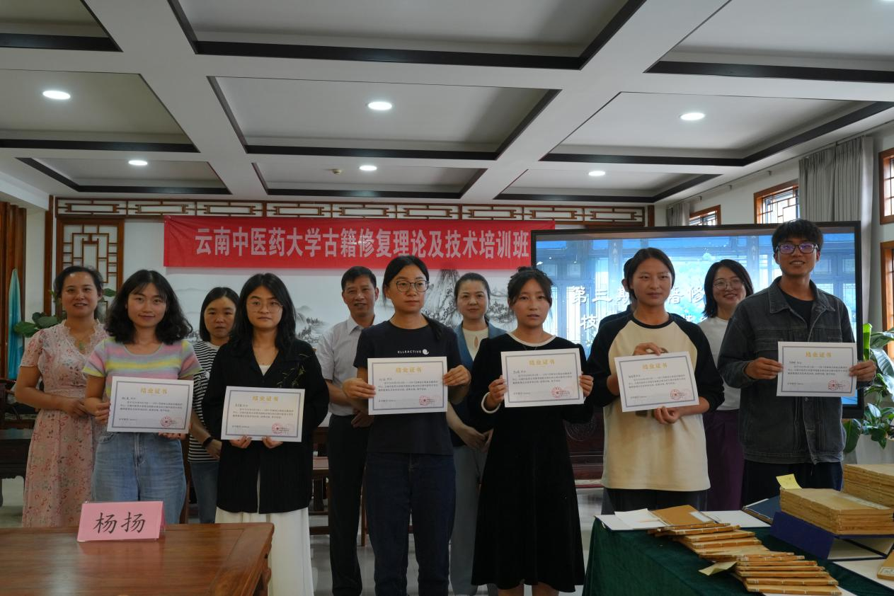 李启勇表示,此次古籍修复培训班是我校落实《关于推进新时代古籍工作的意见》及《云南省推进中医药振兴发展重大工程实施方案》等文件精神的具体体现,且积极落实了云南省“社会科学普及宣传周活动”项目工作任务,通过这次培训,不仅让我校古籍修复人员队伍得到了补充,修复能力也大幅提升,为我校今后开展古籍修复工作奠定了良好的基础,希望依托“云南中医药大学古籍保护传习中心”和“古籍修复工作室”的建设以及古籍修复培训班等古籍工作的开展,未来云南省图书馆、云南省古籍保护中心能同云南中医药大学图书馆一道,更多维度更广领域的开展古籍保护、修复、再利用等方面的合作与交流,使我校在提升古籍整理研究和出版能力,加强古籍工作科学化规范化管理,挖掘古籍时代价值,促进古籍有效利用,推进古籍数字化,做好古籍普及传播等方面能够取得更大的成绩。