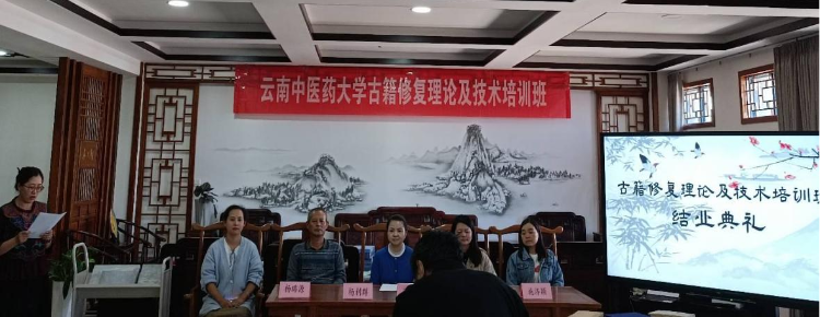 10月27日下午,第二届云南中医药大学古籍修复理论及技术培训班结业仪式在图书馆滇文轩举行。云南省图书馆历史文献部颜艳萍副主任、云南中医药大学图书馆保丽娟副馆长、国家级古籍修复技艺传习中心云南传习所导师杨利群等出席本次结业仪式。