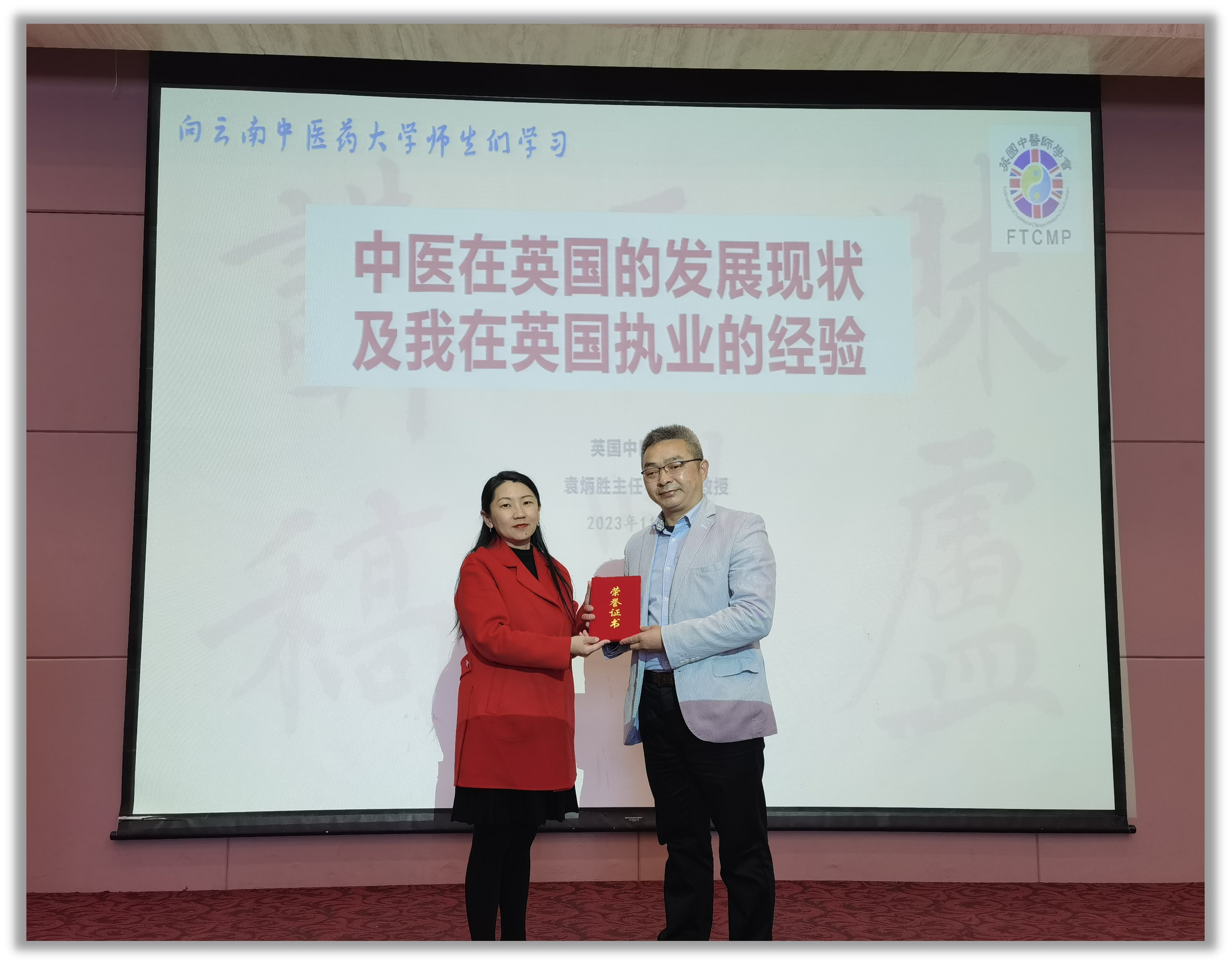 捐赠仪式结束后,袁炳胜教授为云中学子讲授了“中医在英国的发展历史和现状及我的执业体会”专题学术报告。