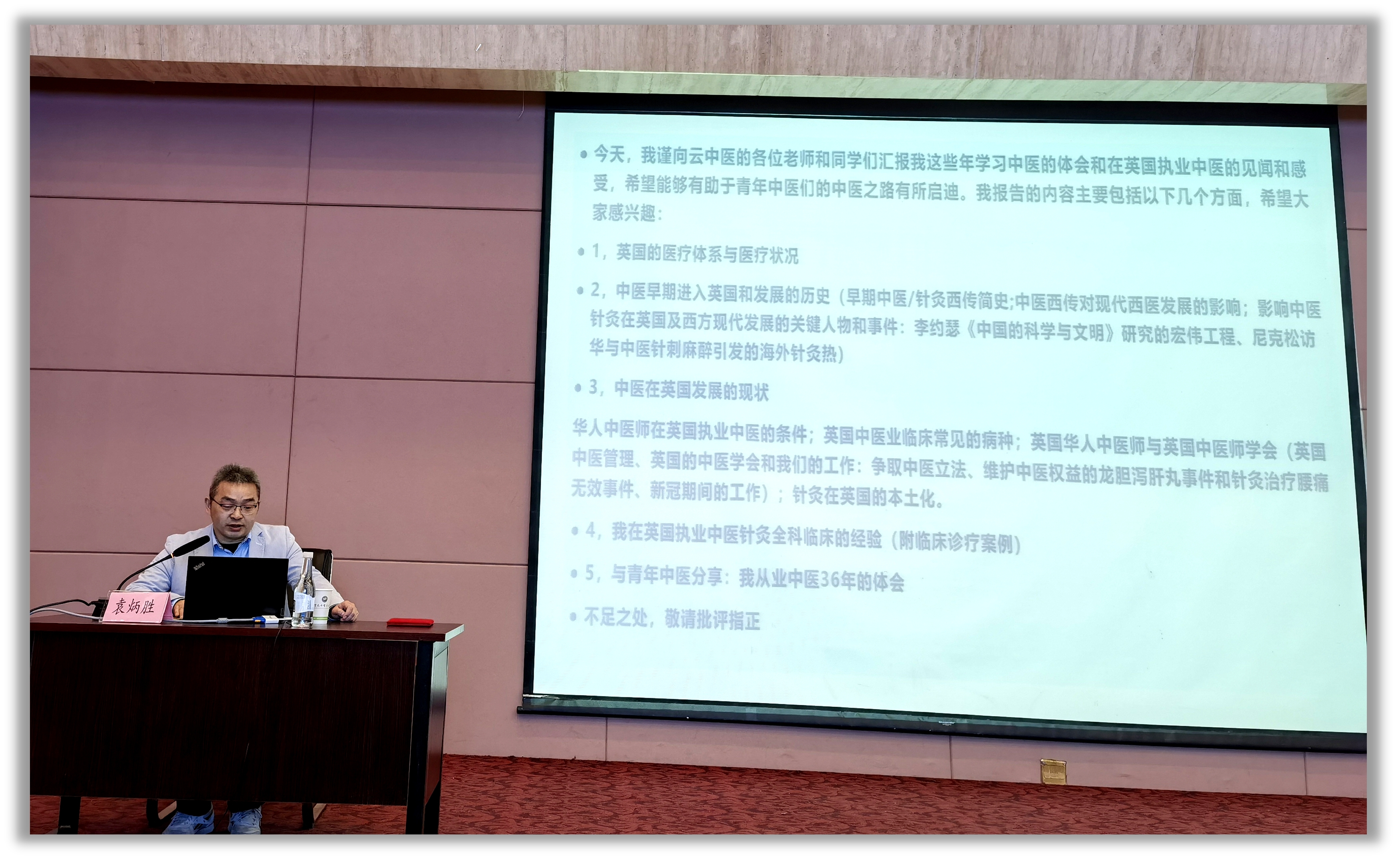 讲座中,袁炳胜从英国的医疗体系与医疗状况、中医早期进入英国和发展的历史、中医在英国发展的现状三个方面讲述了中医在英国的传播,并运用临床案例分享了自己在英国执业中医针灸全科临床的经验及心得体会。最后,袁教授表达了对中青年学生要学好中医、爱上中医的殷切希望。讲座结束后,袁教授与师生们进行了深入的交流和讨论,师生受益匪浅。