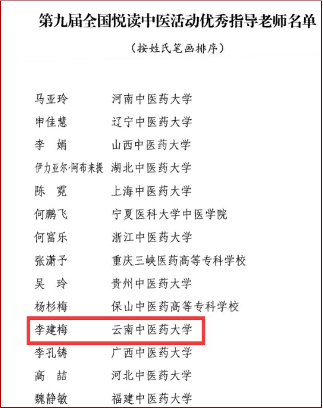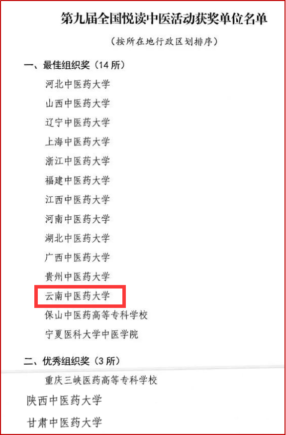 近日,由国家中医药管理局指导,中国中医药出版社有限公司、中国中医科学院、中华中医药学会、《中国中医药报》社有限公司、《健康报》社有限公司、中国新闻出版传媒集团、《中国出版传媒商报》社有限公司联合主办的第九届全国悦读中医活动评选结果揭晓。我校第一临床医学院欧倬伶同学荣获“2023全国中医药阅读推广人”,李建梅老师荣获优秀指导老师,我校也获得最佳组织奖。