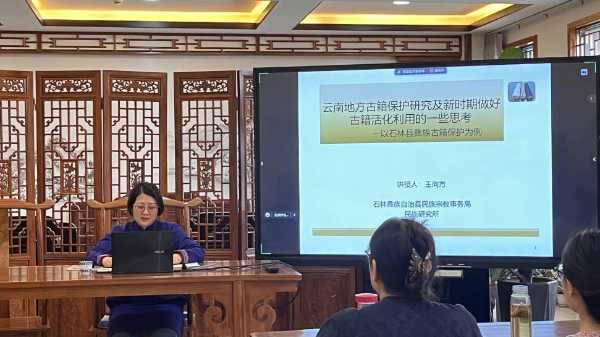 5月10日,第三讲:云南地方古籍文献保护研究以及新时期做好古籍活化利用的一些思考——以石林县彝族古籍保护为例。