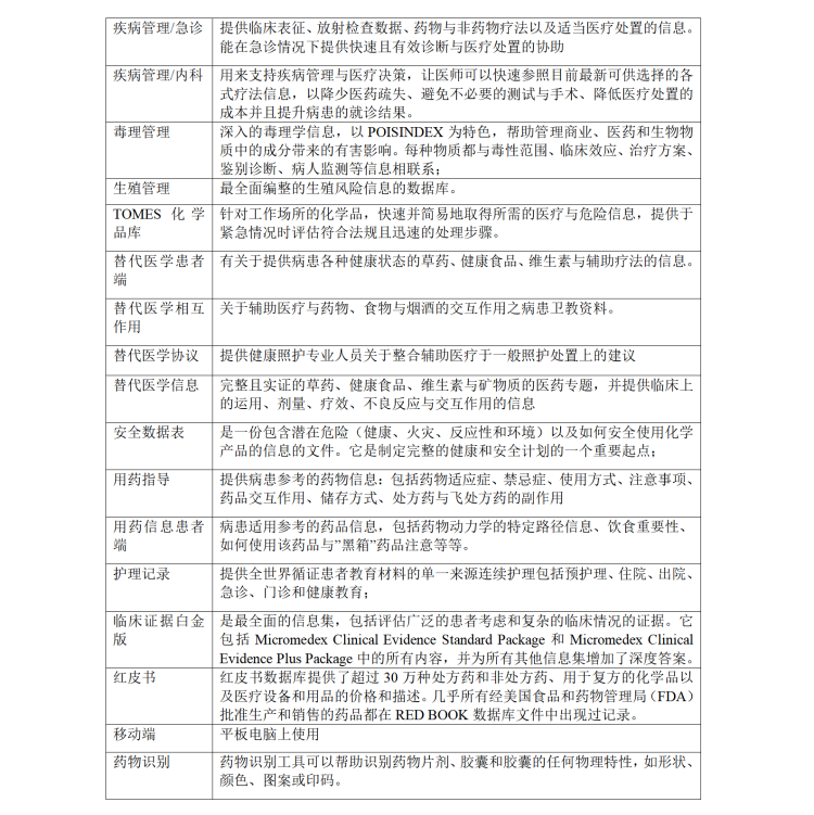 Micromedex®循证药学数据库,为医疗专业人士提供医疗 保健、药品、毒理学等相关信息。不同于一般文摘索引型或全文型数据库,该数据库属于综述型事实数据库,其涵盖了有关药物类别、用药、静脉注射兼容性、药物安全性等方面的循证内容,数据源自8500种期刊和75万份出版物。