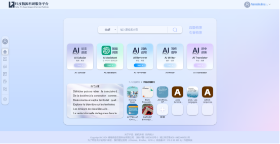 平台拥有卓越的信息处理能力和深度学习技术,并针对科研工作者的需求细化定制出多样化AI功能,提供AI论文速读、AI智能问答、AI润色改写、AI学术翻译等交互式学术服务,为科研工作者提供一个全面、高效、智能化的科研环境,助力其在科研道路上取得更高的成就。
