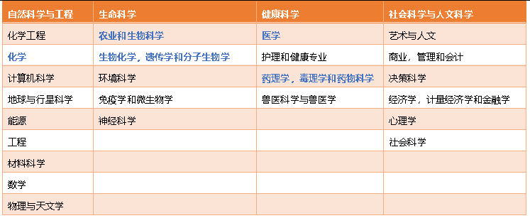 4.1 ScienceDirect自由全文库学科(备注:蓝底色学科是已购学科)