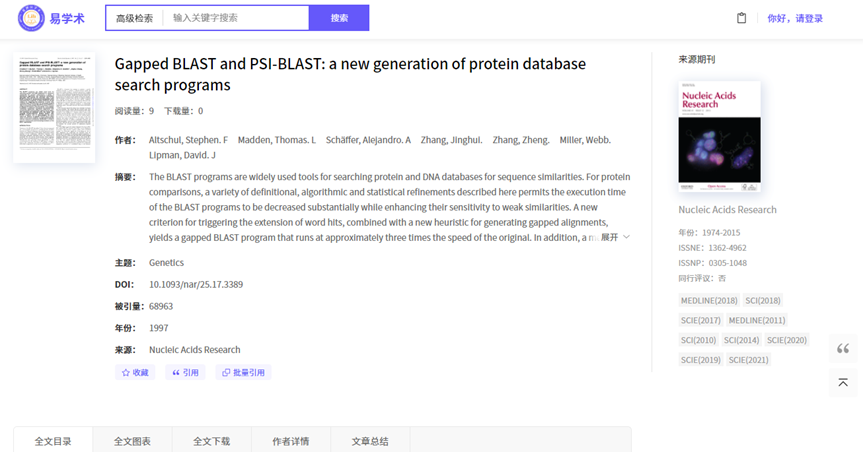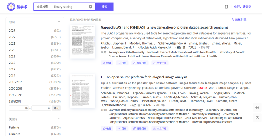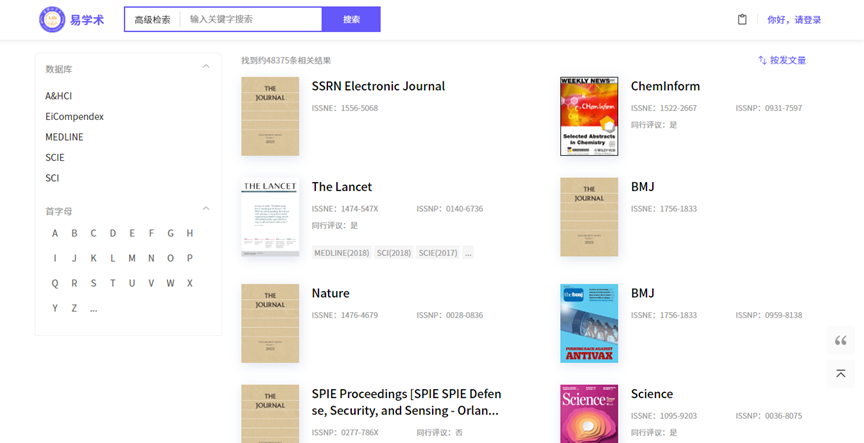 EA资源数据库(易学术)涵盖了10万种外文期刊、1.4亿条外文文献数据、26亿条引文数据,最早可追溯至1850年,全面覆盖科技、医学、农业、交通、航空航天、社会科学、艺术与人文科学等全球研究成果。