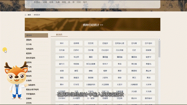 中医本草库中,在病种归经统计中输入疾病或症状,可查看其相关中药的性味归经数据统计。
