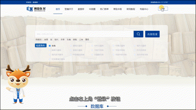 打开浏览器,在地址栏上输入访问地址www.imedbooks.com,或直接在浏览器中检索“博览医书”,跳转到首页。使用过程中您将体会到15大类目数据库、中医圈、热门榜单、博览资讯、学用中医、智慧开方六大板块的全方位体验。