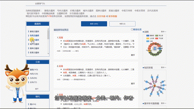 拥有多项发明专利,23项软件著作权,采用智能标引技术,医学专题按知识属性分类整合。