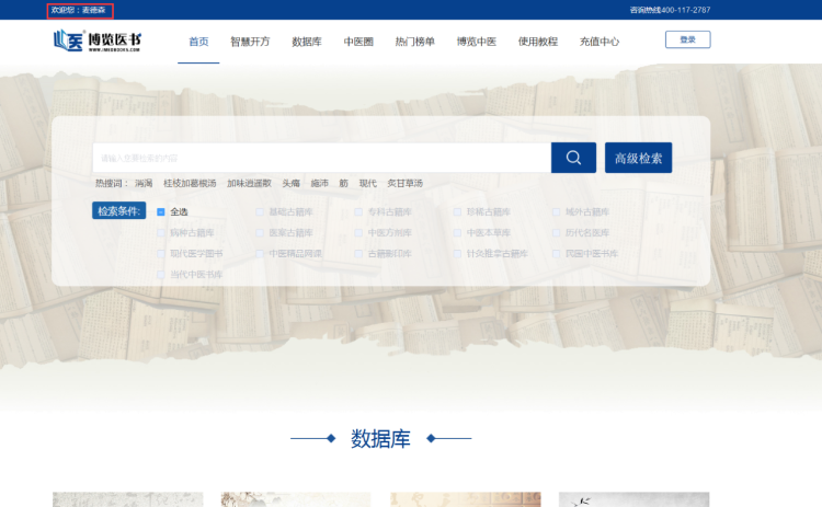 博览医书分为15大类目数据库,类别多样、范围全面。