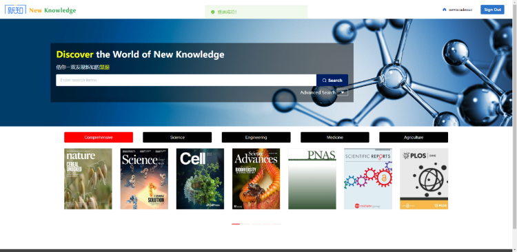 “新知学术发现系统”是专业的学科知识发现系统。该系统集成了学术期刊、会议论文、学位论文、专利、图书等海量中外文文献学术资源。超过30万全球重点期刊,超过80万个学术数据库和站点,实现多类型,多出版商跨库检索。为科研工作者提供专业全面的资源检索,是科研工作必不可少的辅助工具。