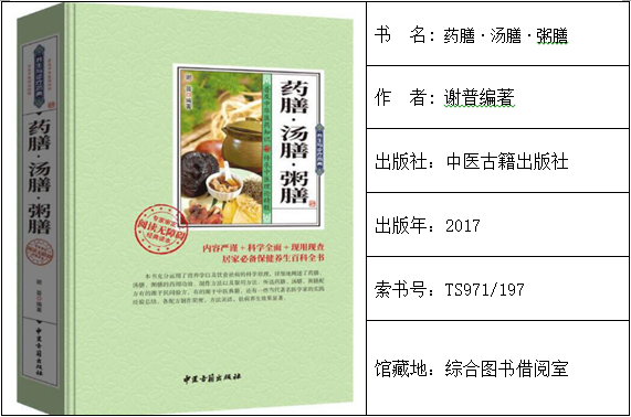内容简介:本书分药膳、汤膳、粥膳。内容包括:药膳药酒基本常识;治疗内科疾病的药膳;治疗外科疾病的药膳;治疗儿科疾病的药膳;治疗妇科疾病的药膳;汤膳概述;治疗内科疾病的汤膳;汤膳治妇科疾病;粥膳概述等。