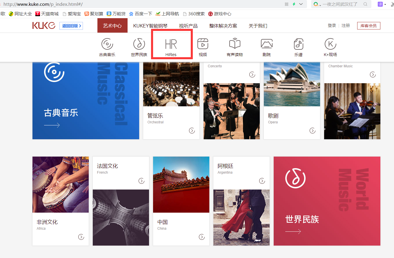 库客Hi-Res精选由15个音乐分类组成,涵盖西方古典音乐和中国本土音乐,以及独具特色的世界民族音乐等。