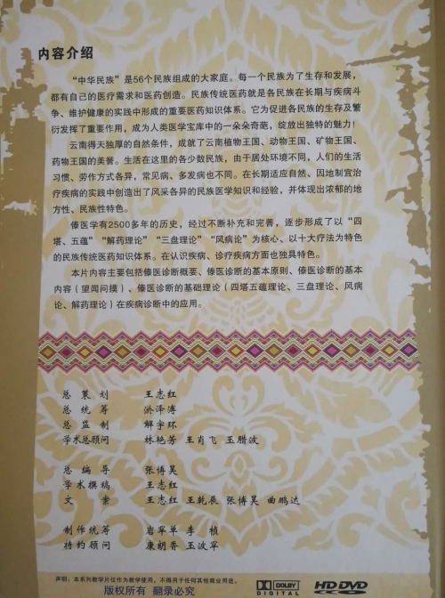 本片内容主要包括傣医诊断概要、傣医诊断的基本原则、傣医诊断的基本内容(望闻问摸)、傣医诊断的基础理论(四塔五蕴理论、三盘理论、风病论、解药理论)在疾病诊断中的应用。