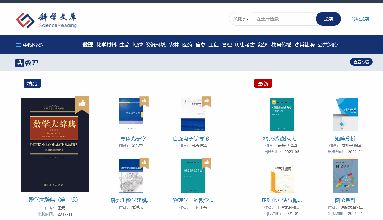 n质量高:几乎囊括科学出版社60余年来所有获奖作品、知名专家著作、重点丛书、各学科必备经典专著和教材等。
