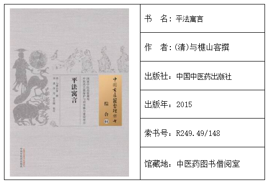 内容简介:《平法寓言》,清代与樵山客撰。全书共十卷。卷一、卷二为慎学篇,概括脏腑经络大要。卷三、卷四为启悟篇,解析脉经。卷五、卷六为正名篇.在《伤寒论》六经病框架下论热病。卷七为育类篇.细数妇科经、孕、产及杂病。卷八为遏移篇,谈小儿络脉辨证及惊风、痘、痧等病的病因诊治。卷九、卷十为砭惑篇,批驳温厉、肠辭、喉痹、痃疟为疫病之说,同时探讨了冑痈、振埃、痈疽疔毒、金疮箭毒等病的理法方药。本次整理以清光绪十三年一1887刻本为底本。